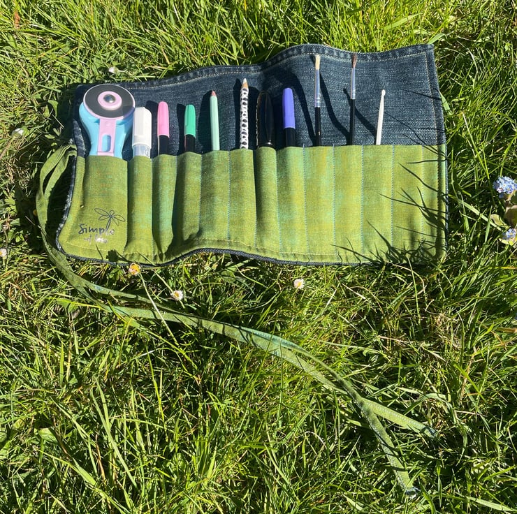 Ideal to keep your art or makeup essentials neatly packed and easy to carry. Featuring individual slots for brushes (or pencils) and a wrap design, it's perfect for travel or daily use.