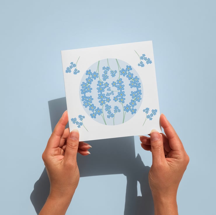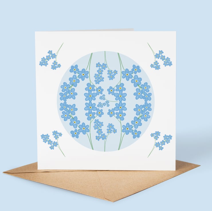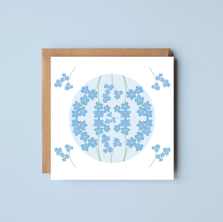 Pretty card featuring a dainty Forget Me Nots flower design. These flowers symbolise remembrance, devotion and true love.