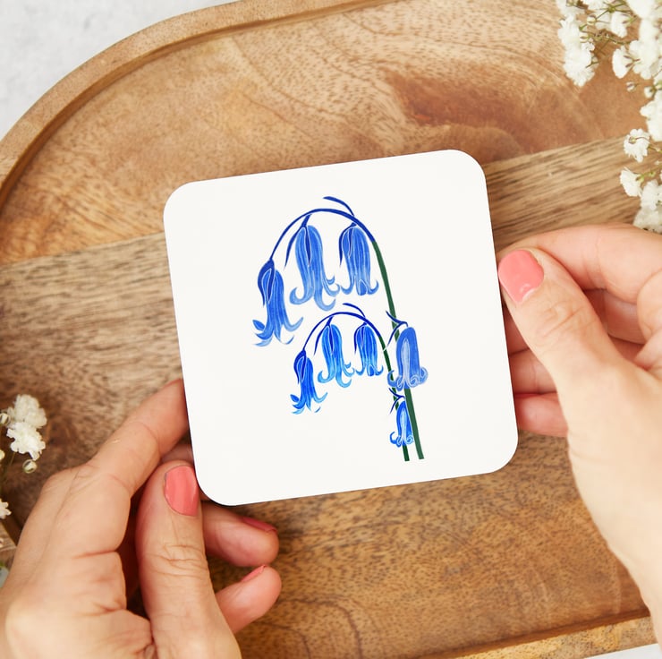 Mug coaster featuring my original hand drawn design of some pretty Spring bluebells.