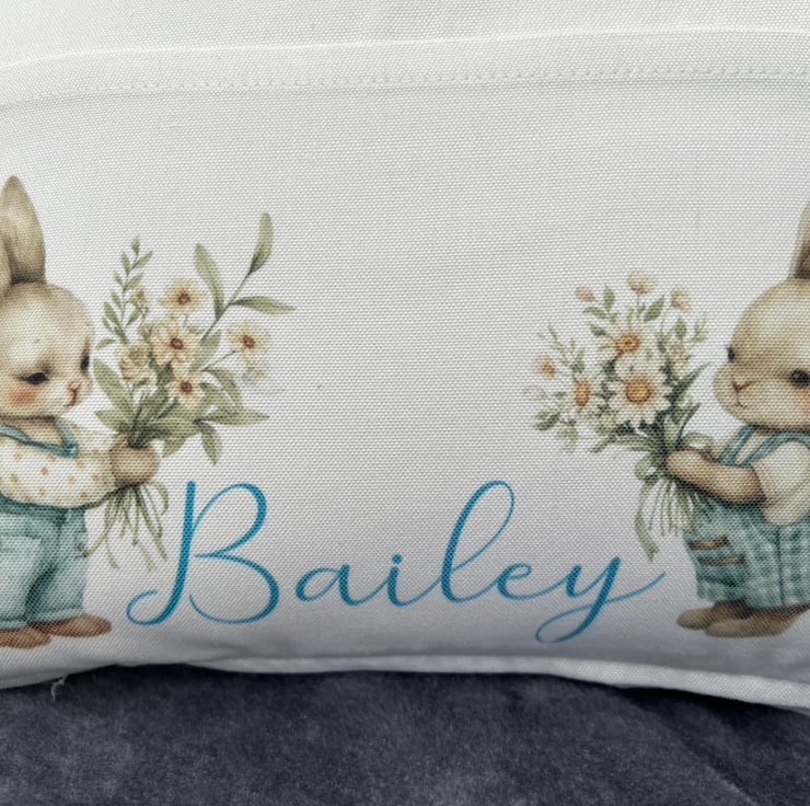 Personalised reading cushion rabbit bunny bunnies Christening Easter Baby Shower