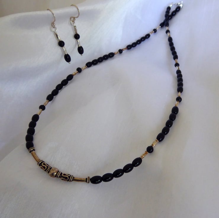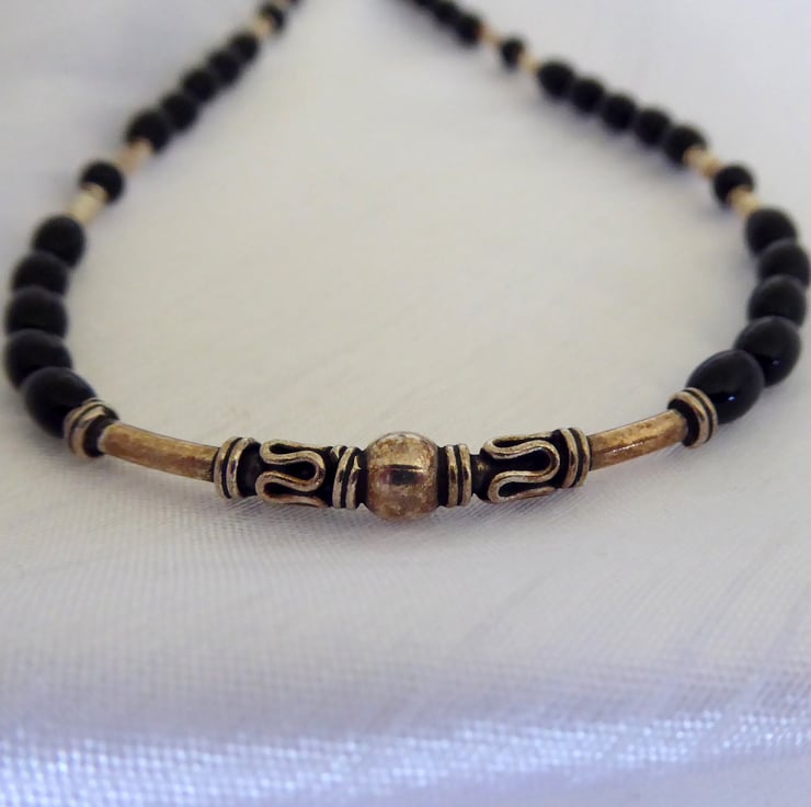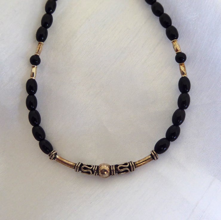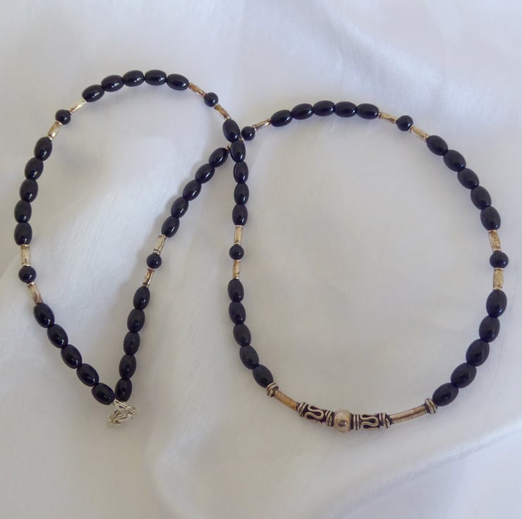 Black Onyx, Sterling & Fine Silver Gothic Necklace