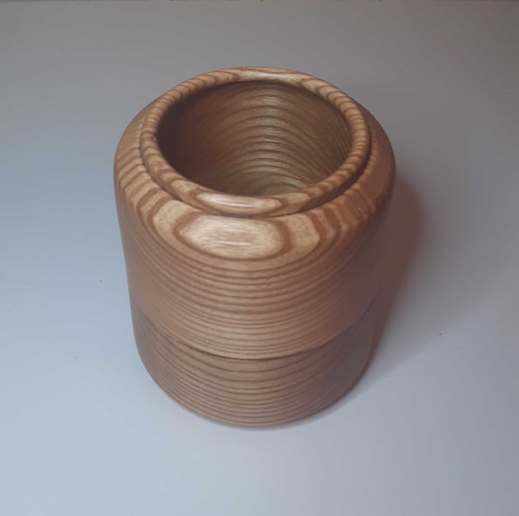 Elegant ash wood pot with smooth grain and rimmed edge, perfect for décor or storage.