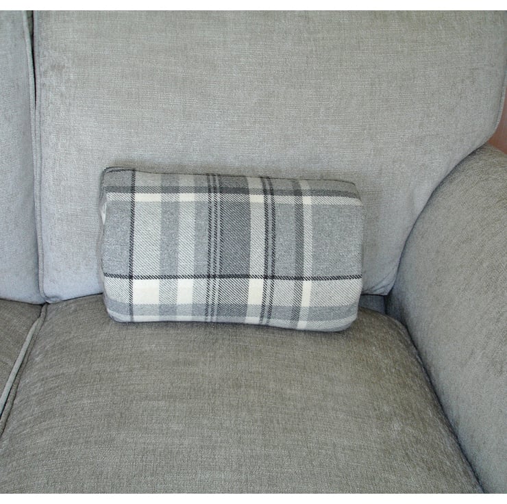 Half Moon Bolster Cushion Cover Semi Round Neck Roll Pillow Grey WoolFeel Tartan