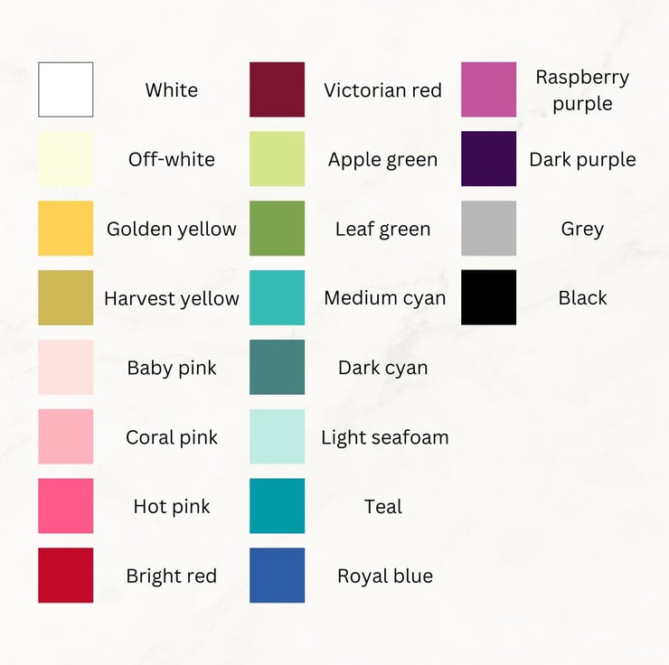 To make your choice, choose your colour and your length in 1/2 metre (just over 19.5 inches) increments using the drop down menus. If you'd like a different length, a different colour or separate lengths of a colour, please contact me and I'll create a listing for you. Picture 1 shows Spring Fling.