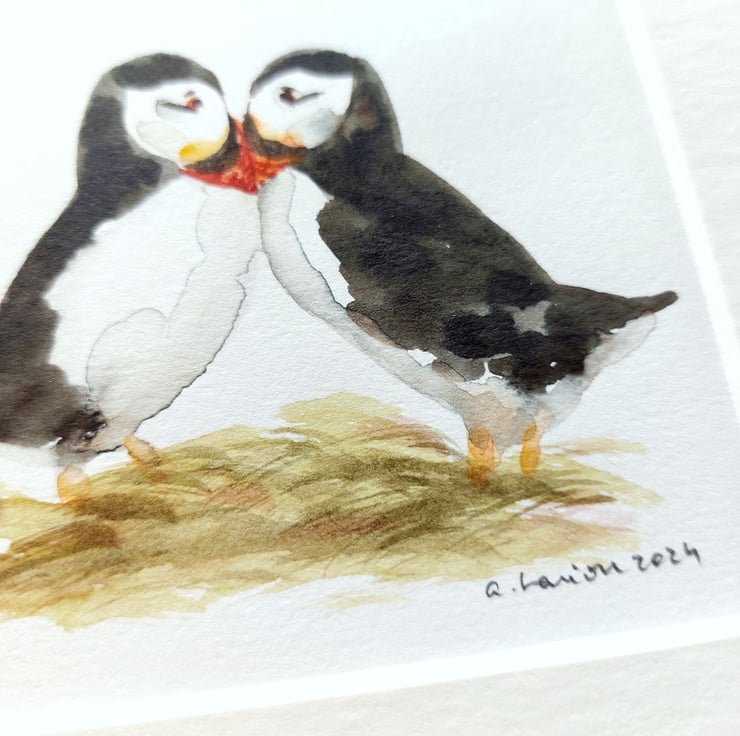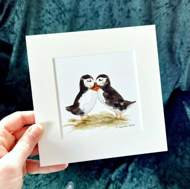I am a passionate nature lover and seize every opportunity to explore the natural beauty of the places I visit. Scotland is home to many remote locations where puffins can be observed in their natural habitat. Although I have chosen Scotland as my home, I have only seen puffins at the Georgia Aquarium in Atlanta, which is nearly 4,000 miles away! I am eagerly looking forward to spotting these adorable birds in the Scottish wilderness soon. I will keep painting them in the meantime.