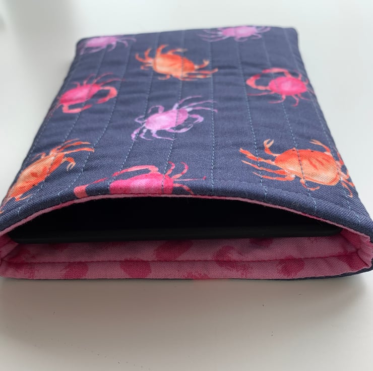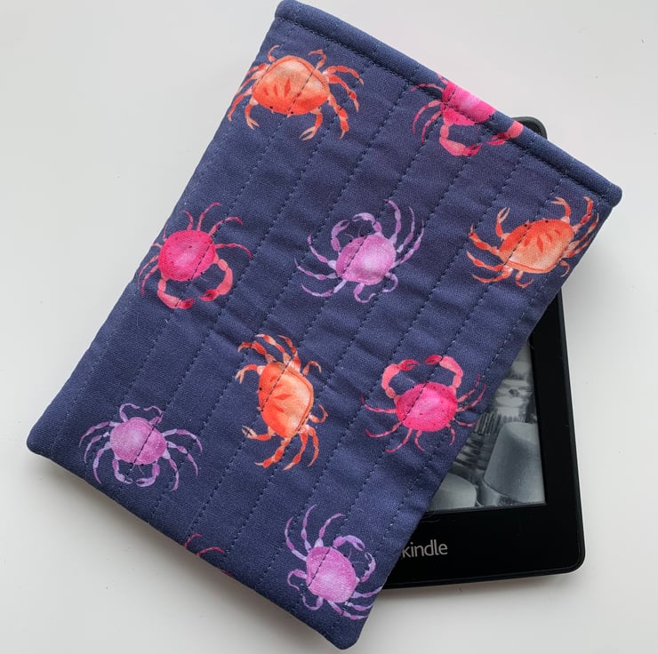 Crab Print Quilted Cotton Fabric Sleeve for 6” Kindle