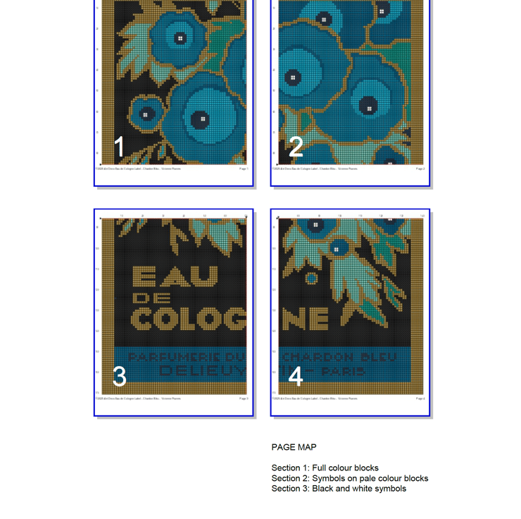 Cross Stitch Vintage 1920s Art Deco Eau de Cologne Label Chardon Bleu Delieuvin repro chart No. 2. by Vivsters PDF Counted Chart 182B (223)