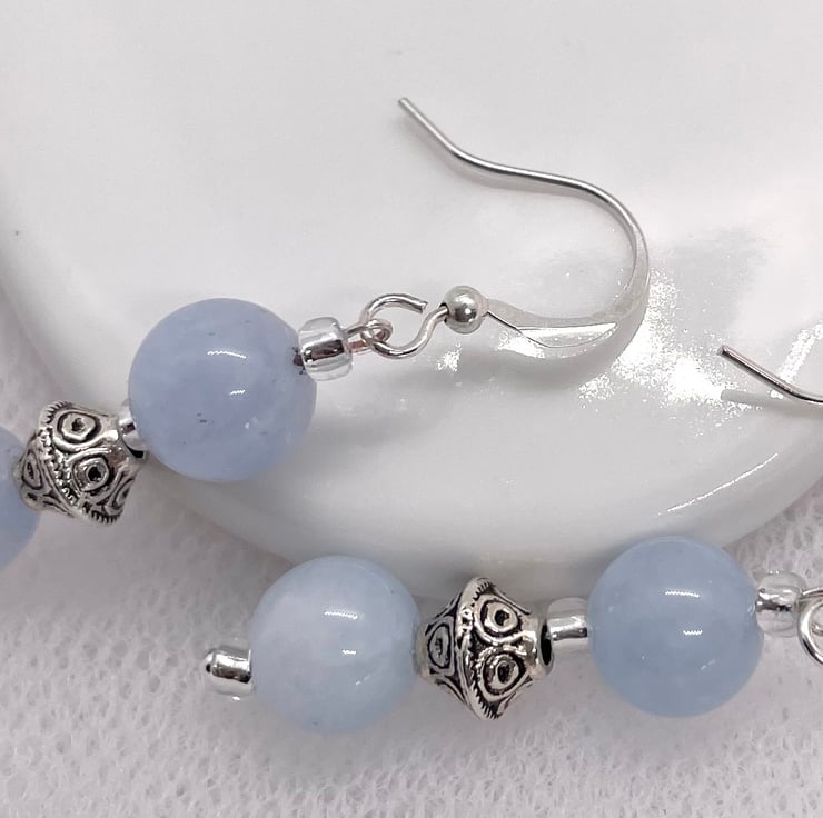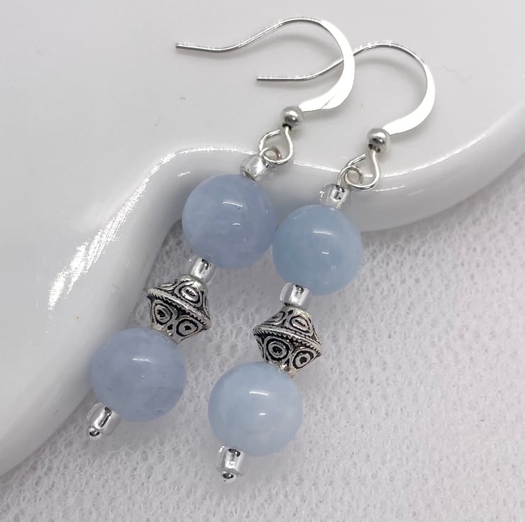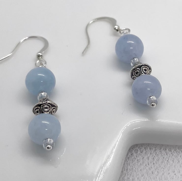 Pretty semi-precious aquamarine earrings in blue with silver plated spacer bead and earwires.