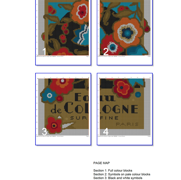 Adaptation of a 1920s Art Deco Eau de Cologne Surfine colourful floral French perfume bottle label/poster - Vintage cross stitch/tapestry chart Instant download by Vivsters - 182D