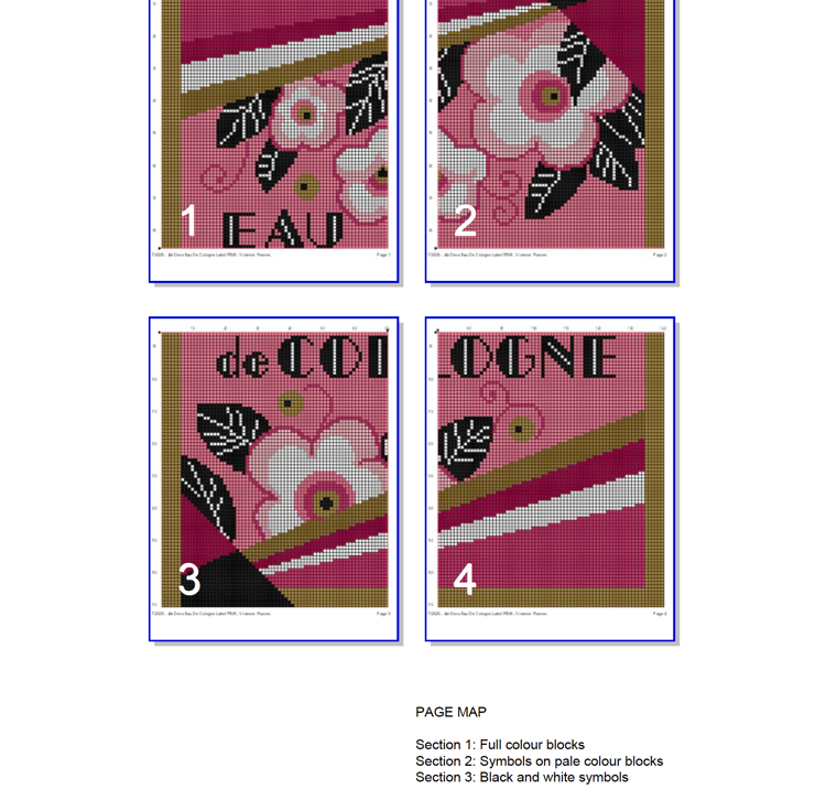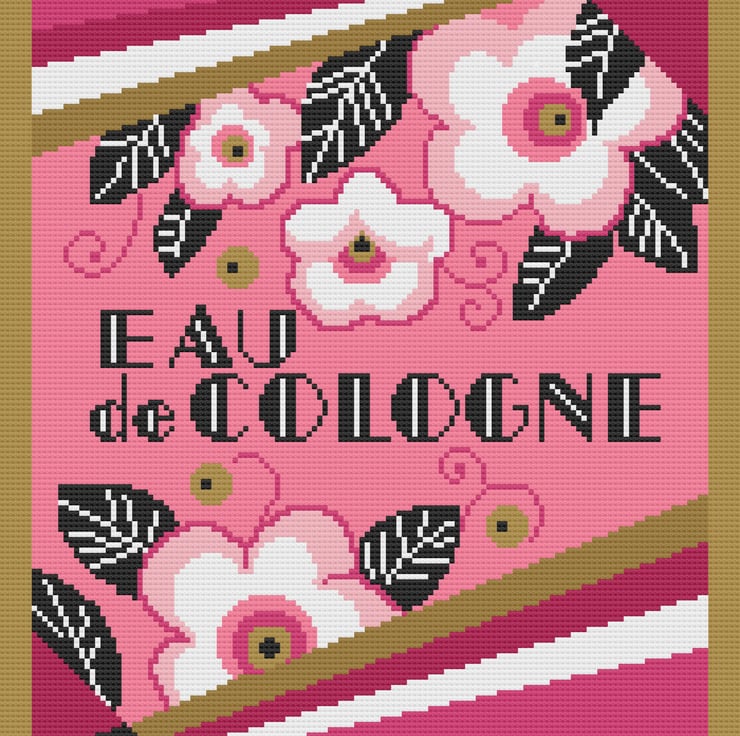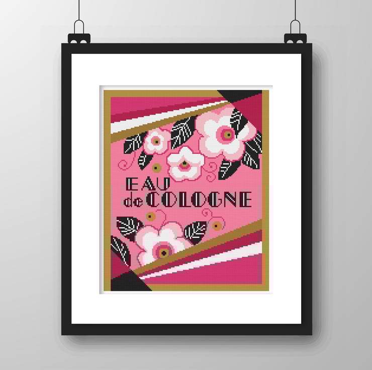 Adaptation of a 1920s Art Deco Eau de Cologne Floral Pink French perfume bottle label/poster Vintage cross stitch/tapestry chart Instant download by Vivsters - 182E