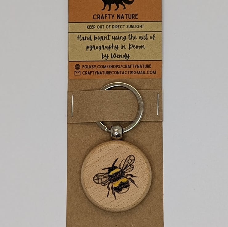 As each bumblebee keyring is totally handburnt no two will be identical and the one received may differ slightly from the photos shown.