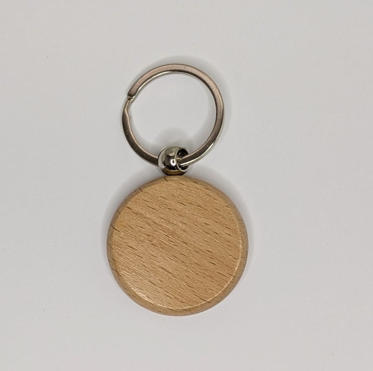 Round wooden keyring which has been lovingly handburnt with a bee, using the art of pyrography, and a pop of acrylic paint. This solid keyring has been varnished for extra protection.