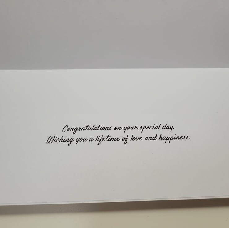 The card insert includes a sentiment which reads "Congratulations on your special day. Wishing you a lifetime of love and happiness"