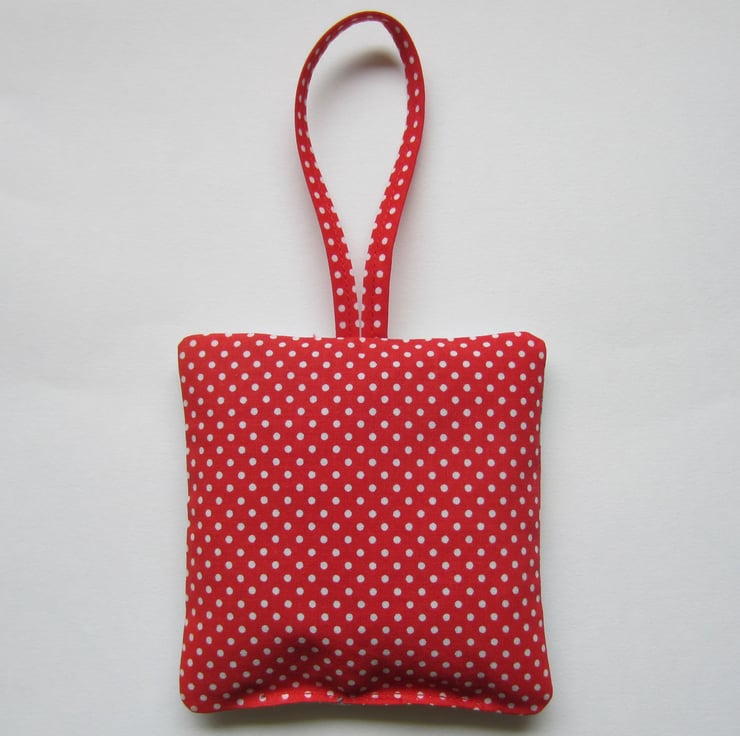 It is filled with Suffolk lavender hand picked and prepared by me and hangs with a matching loop.