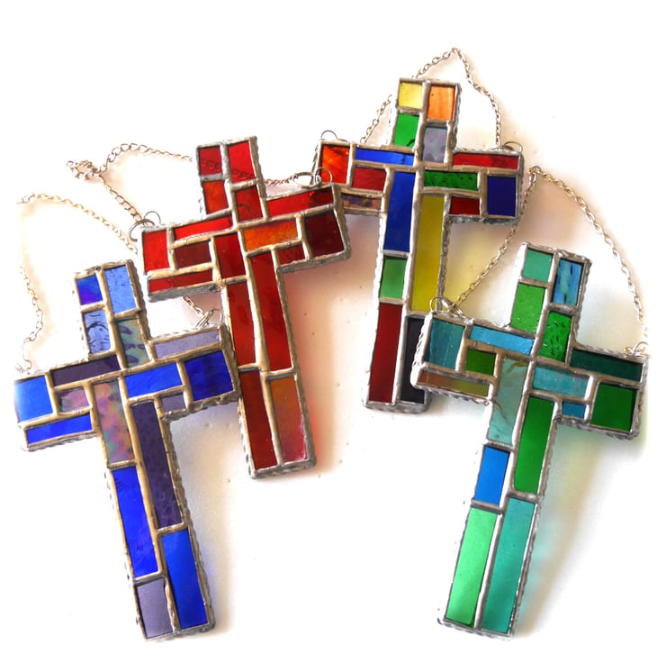 I've tried to incorporate the design of a modern stained glass church window into a classic cross shape.