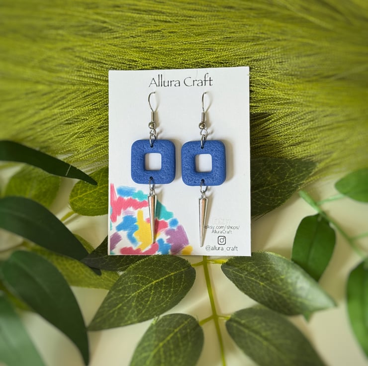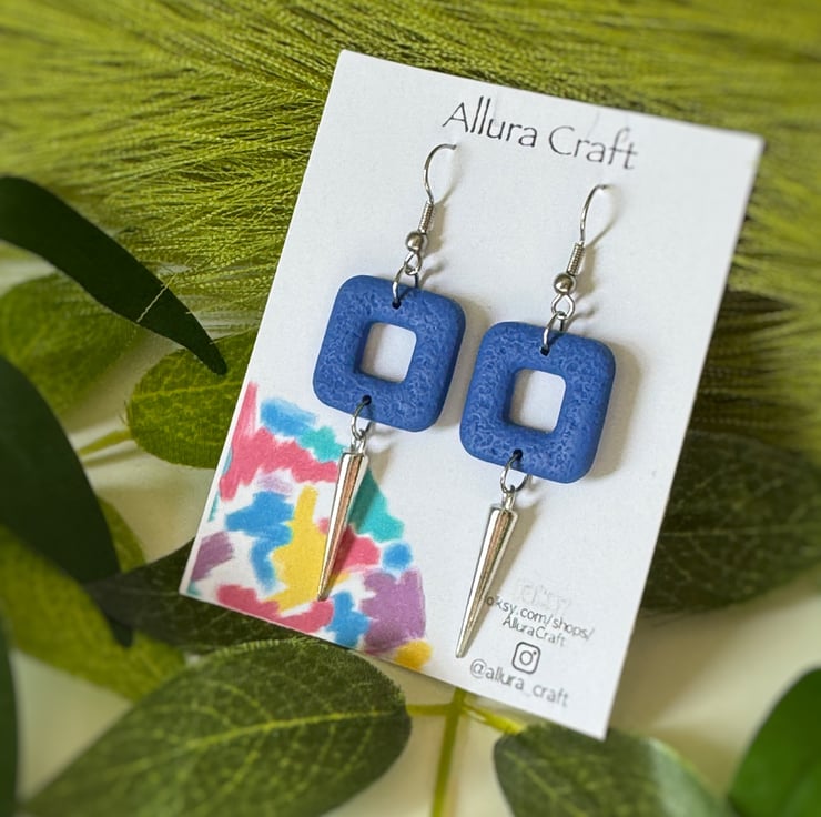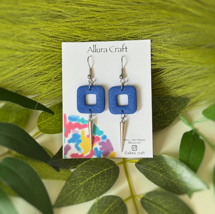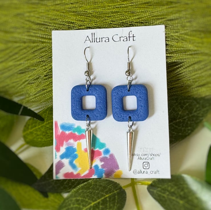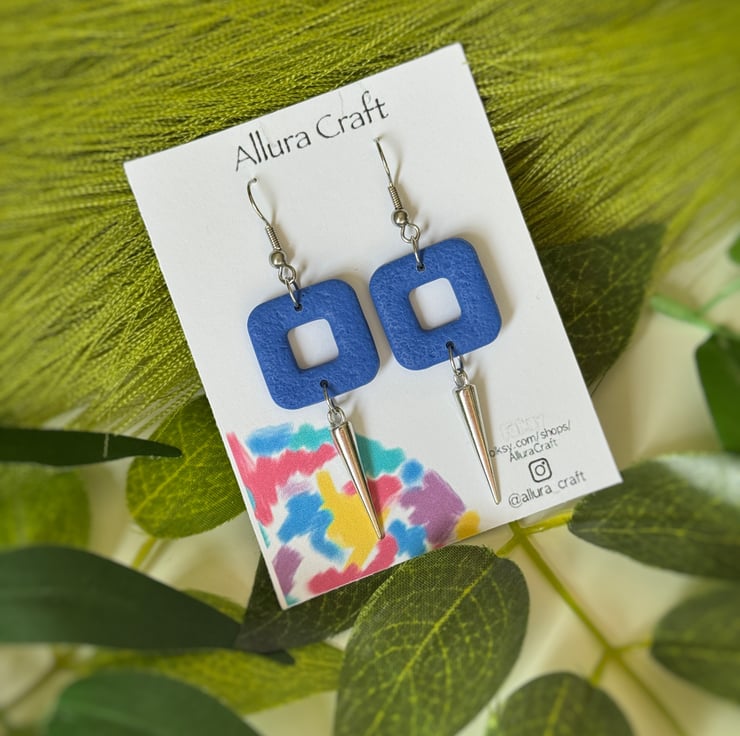 Textured hollow Squares, made from Polymer clay in True Blue with a matt naked surface finish.