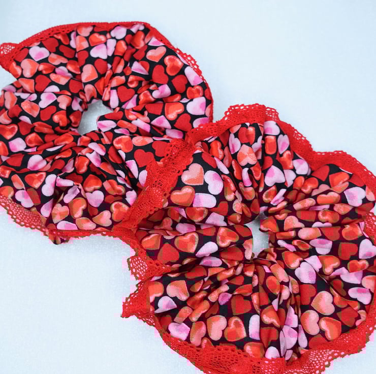 XXL Scrunchies, Heart Print Scrunchies, Gifts for her, Valentine Scrunchies