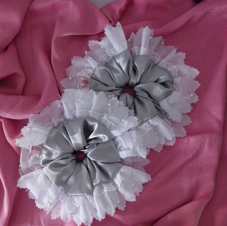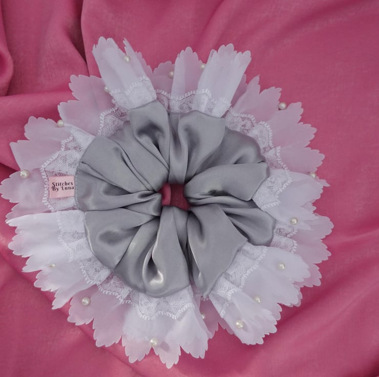 Chiffon Statement Scrunchies, Frilly Ruffle Scrunchies, French Lace Romantic