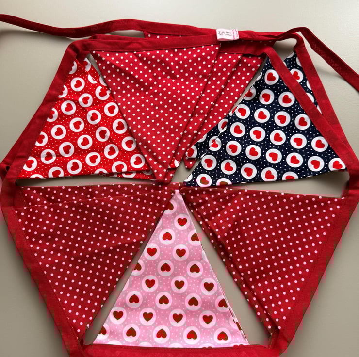 Double sided Valentine Themed Bunting Flags in cotton bias bindings