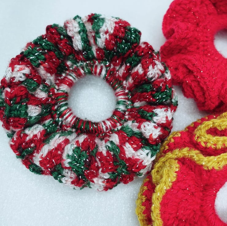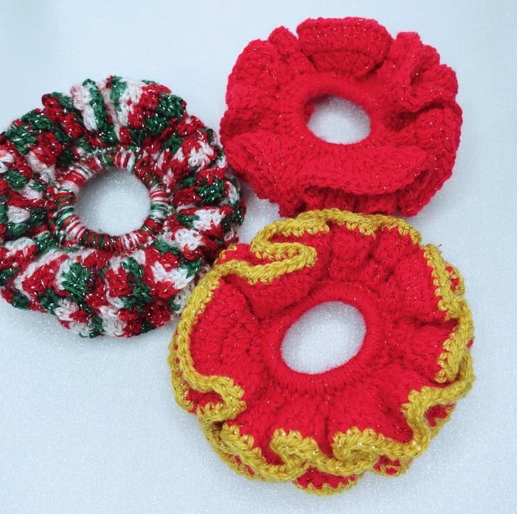 Christmas Themed Crochet Scrunchies Double Frilly Crochet Scrunchies