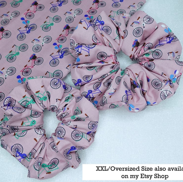 Bicycle Print Scrunchies, Summer Holiday Fun Cycle Print Scrunchies