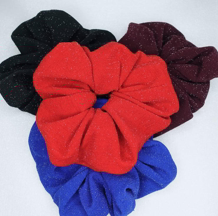 FestiveParty Themed Silver Glitter Scrunchies in Black, Red, Blue & Wine