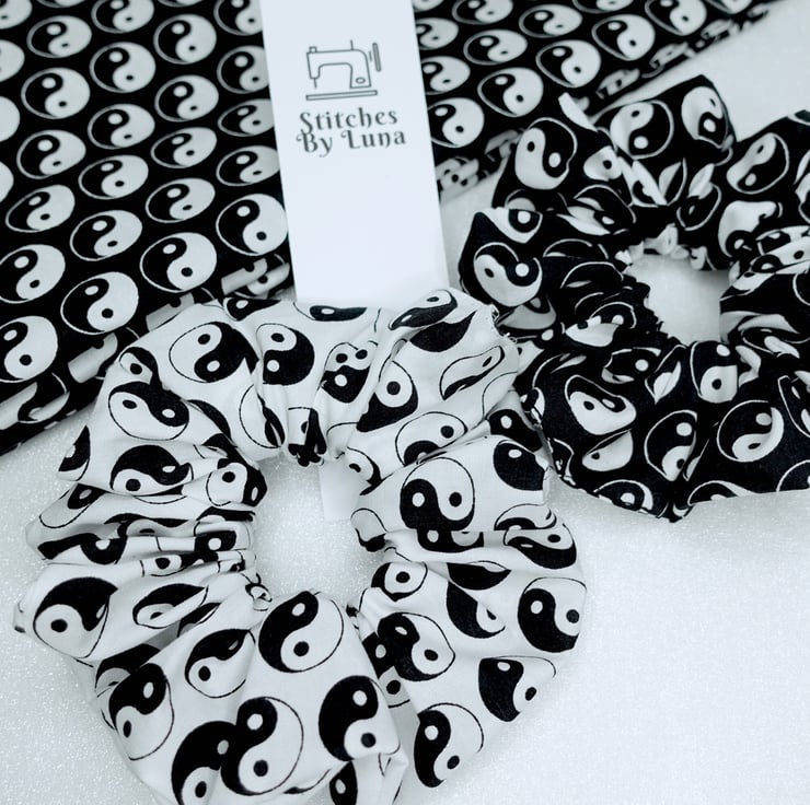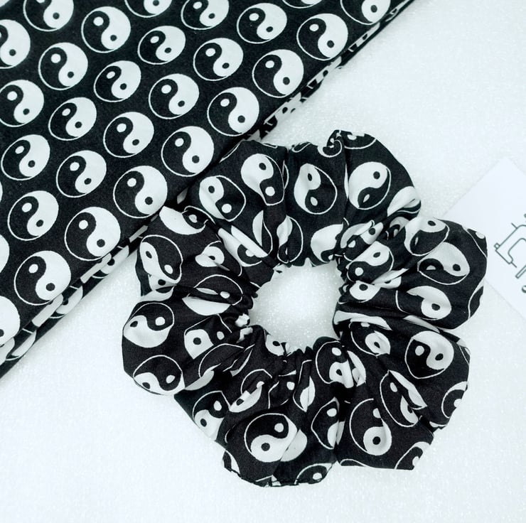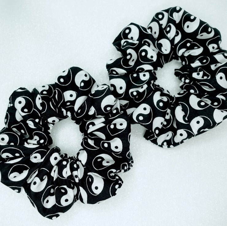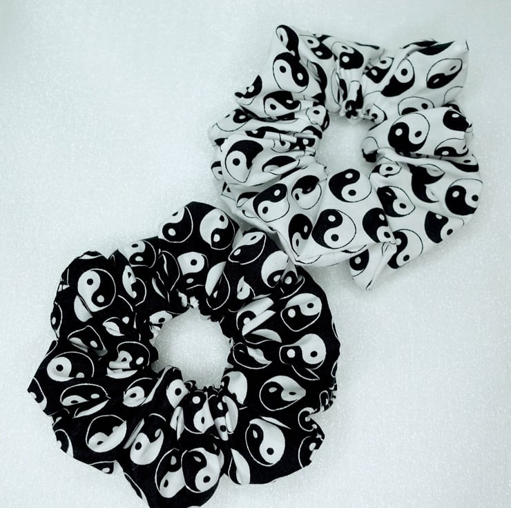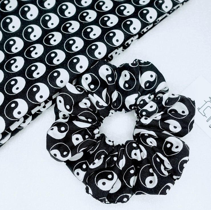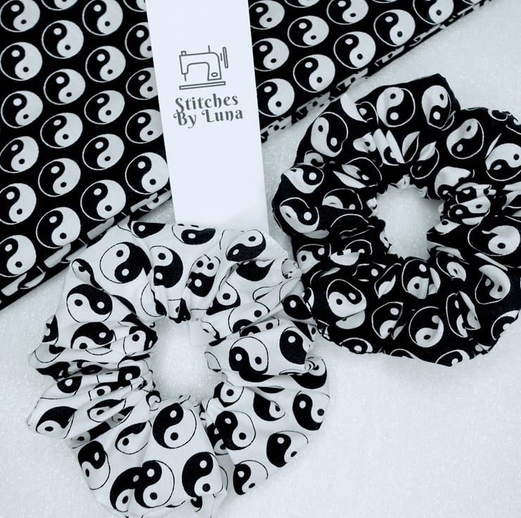 Hair Scrunchies, Yin Yang Scrunchies, Yin & Yang Scrunchies, Handmade Scrunchies, , Black Scrunchies, Cotton Scrunchies UK, Hair Ties UK