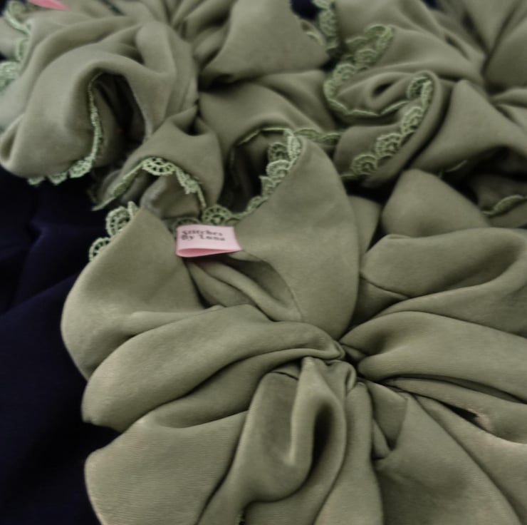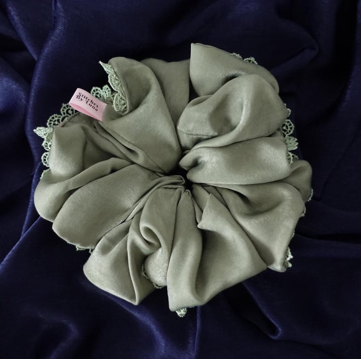 Oversized Lace Trim Scrunchies, XXL Velvet Satin Scrunchies, Handmade Scrunchies