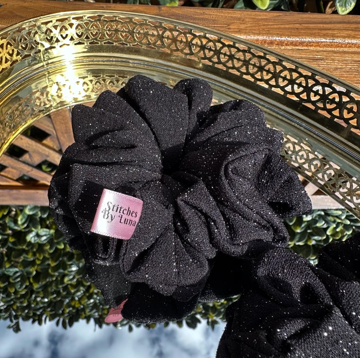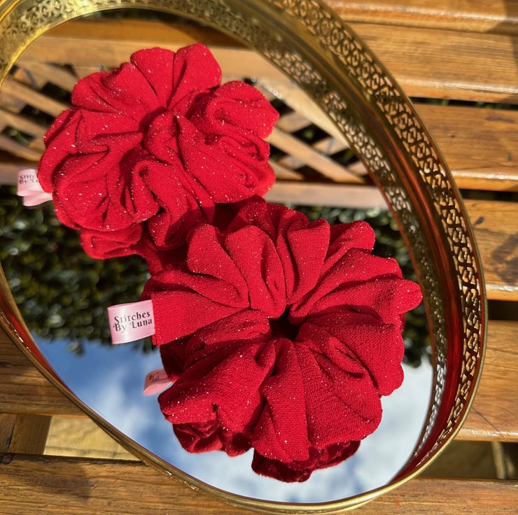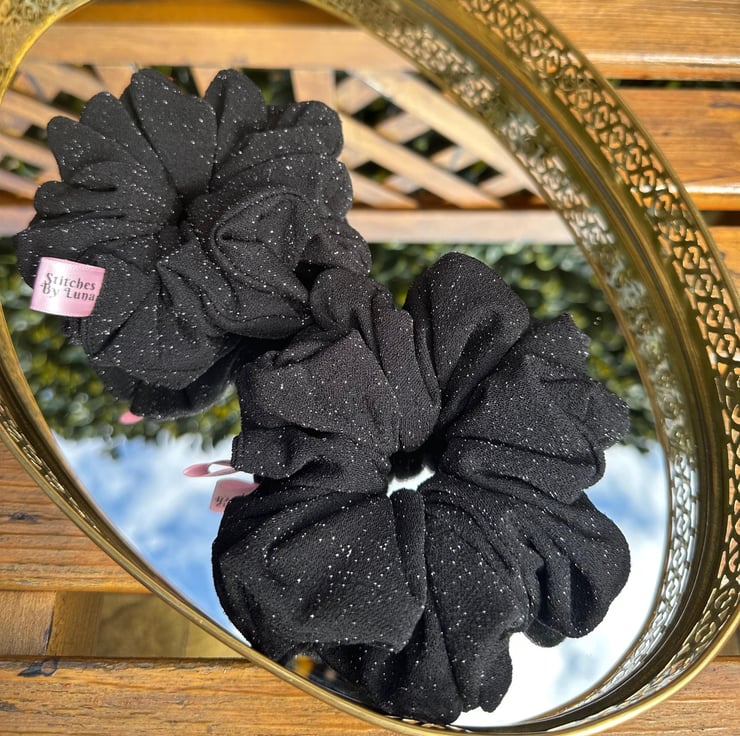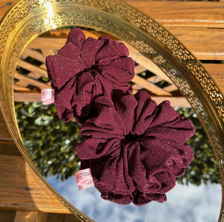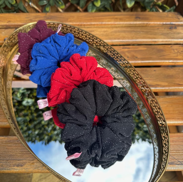FestiveParty Themed Silver Glitter Scrunchies in Black, Red, Blue & Wine
