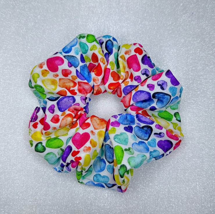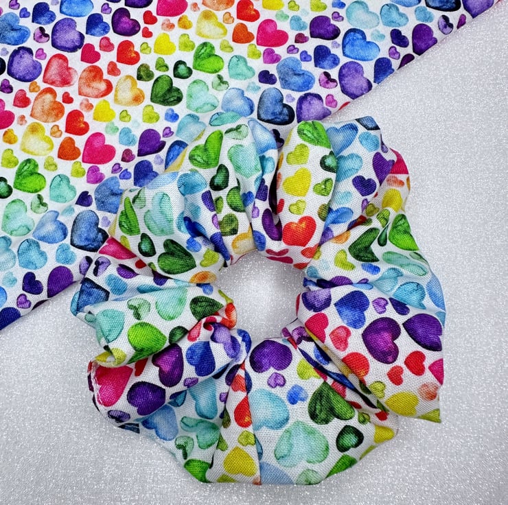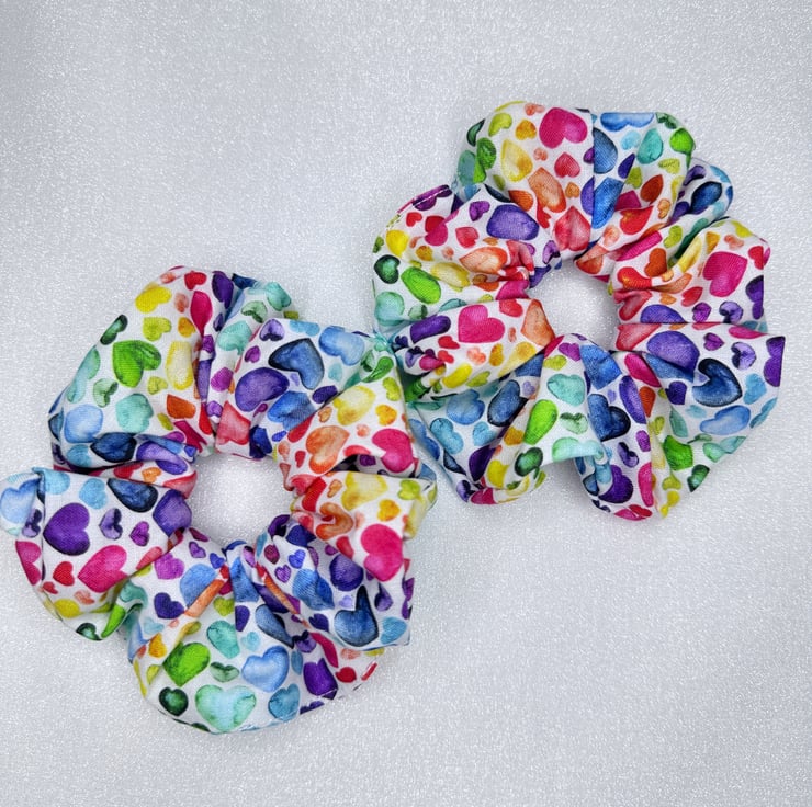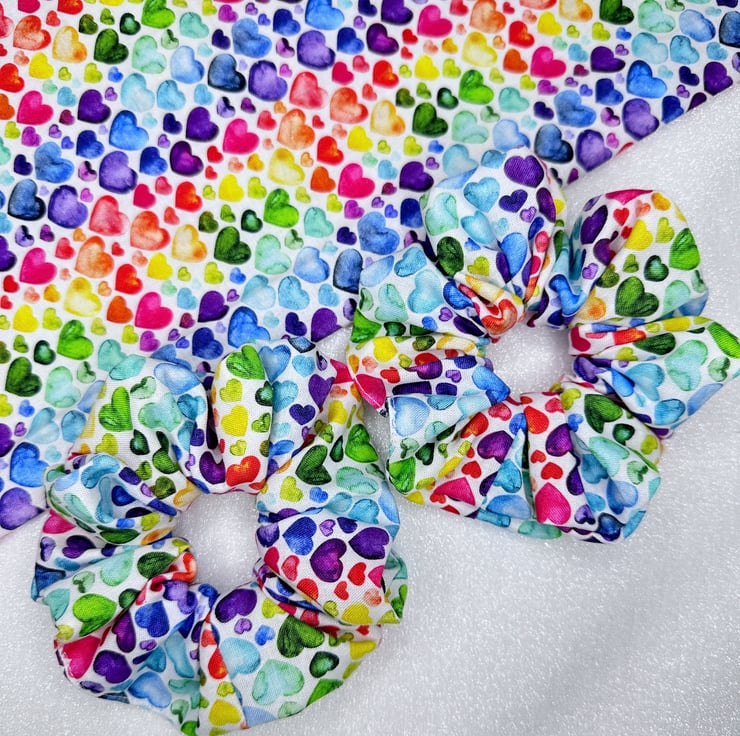 Heart Scrunchies, Rainbow Scrunchies, Rainbow Heart Scrunchies, Hair Scrunchies, Pride Scrunchies, 100% Cotton Scrunchies, Handmade UK