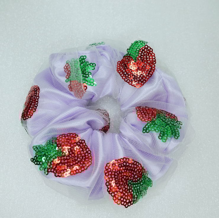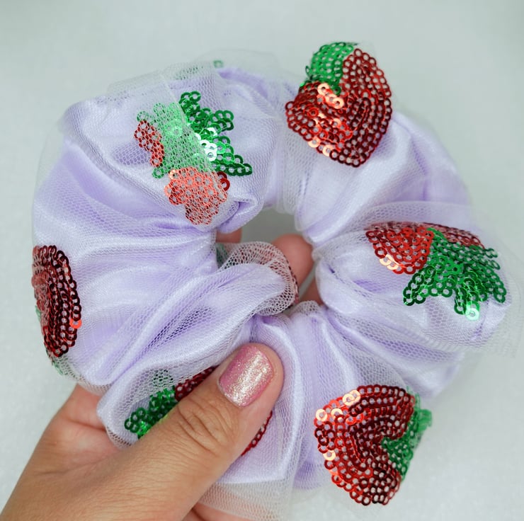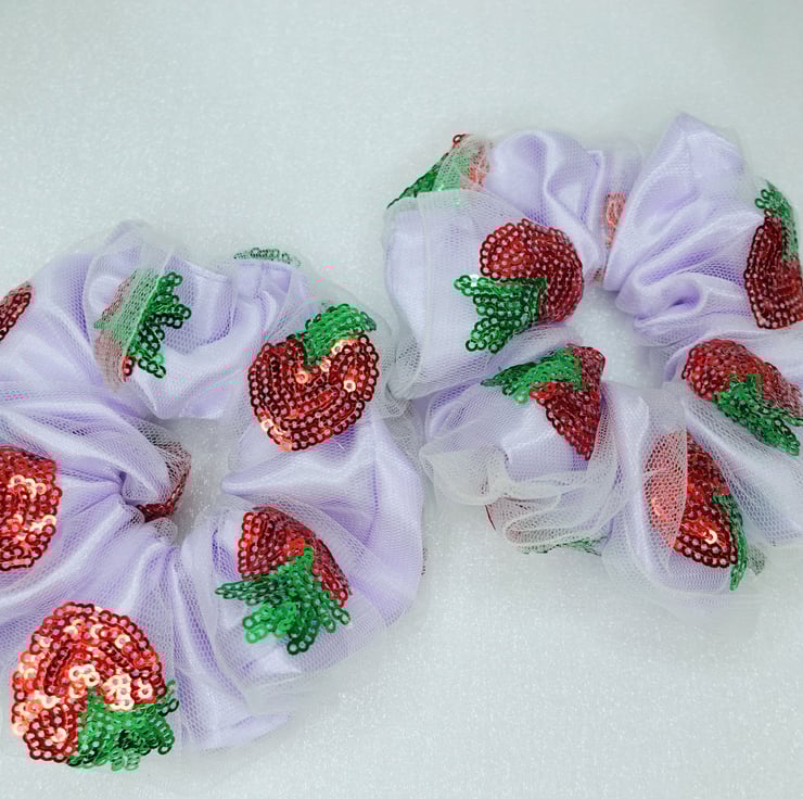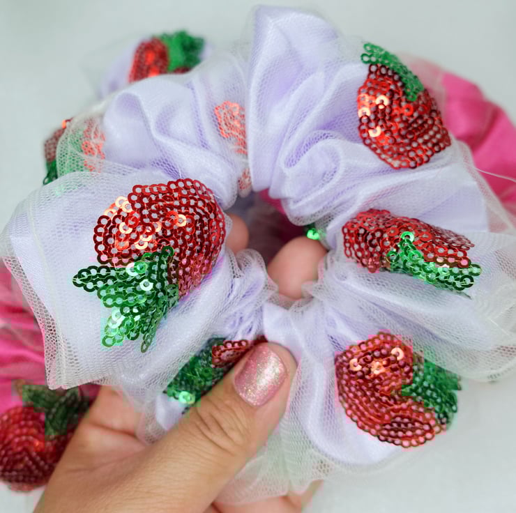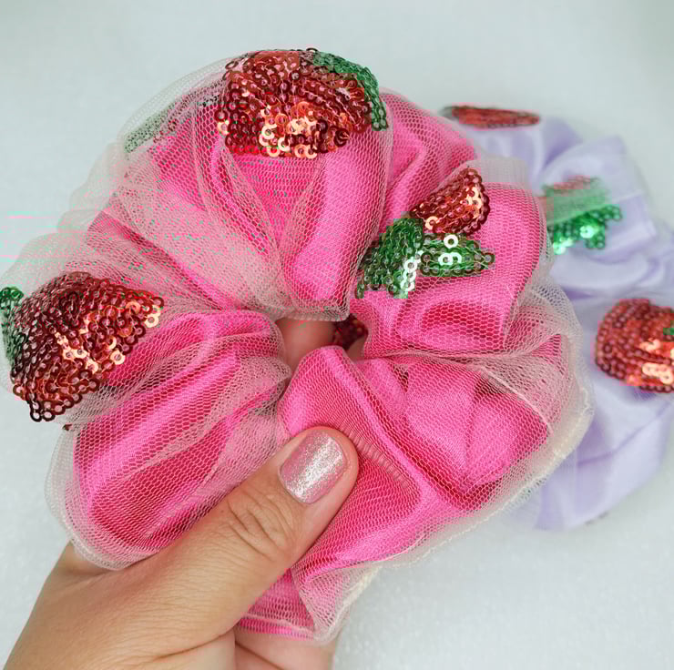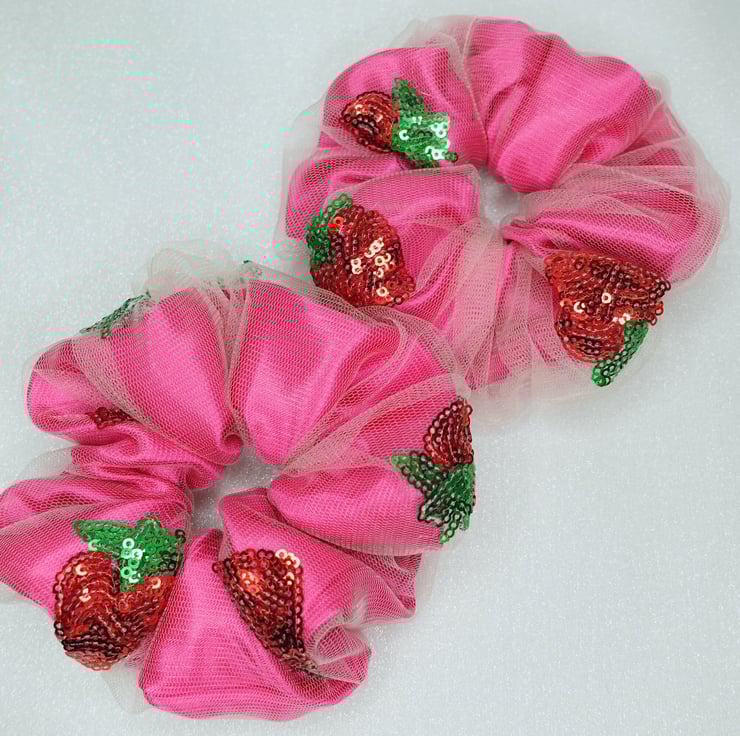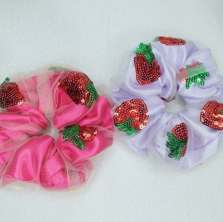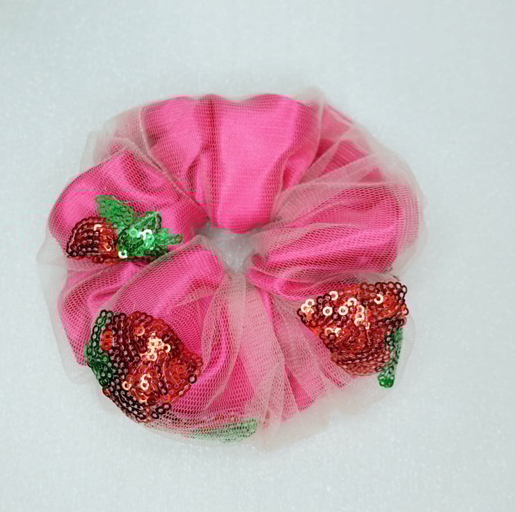 Strawberry Sequin Tulle ScrunchiesDouble LayerTwo Layer Scrunchies