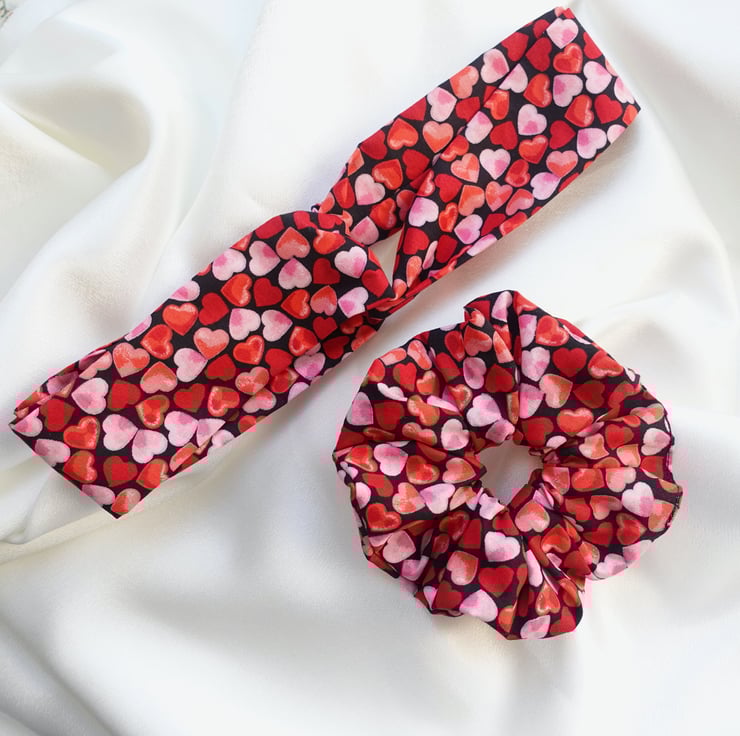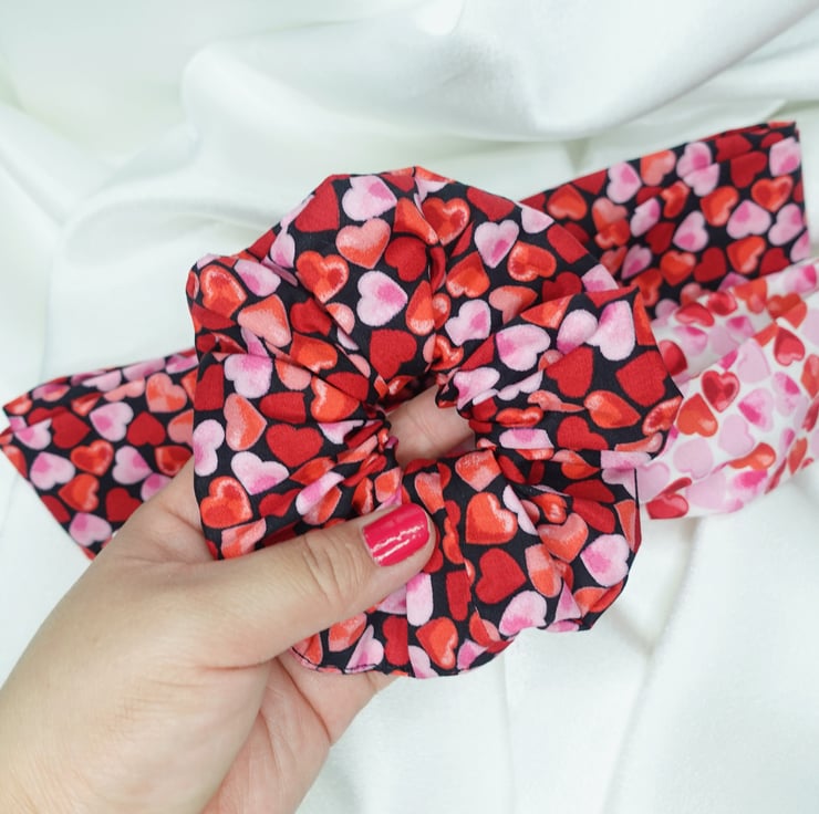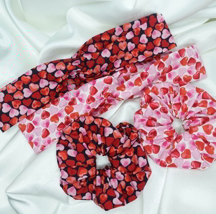Heart Print Scrunchies & Headbands, Romantic Valentine Scrunchies