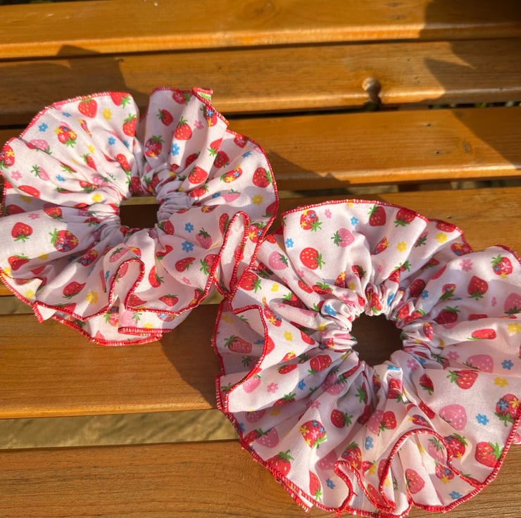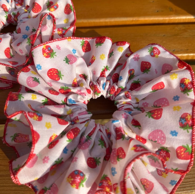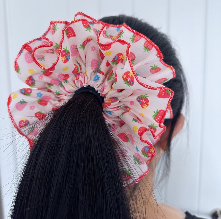 Oversized XXL Strawberry Scrunchies, Frill Ruffle Scrunchies