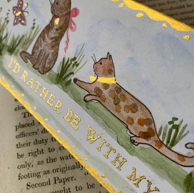 The bookmark is 20 cms x 7 cms, and the reverse is left plain for you to add your own message. It is painted on 300 gsm cotton rag watercolour card.