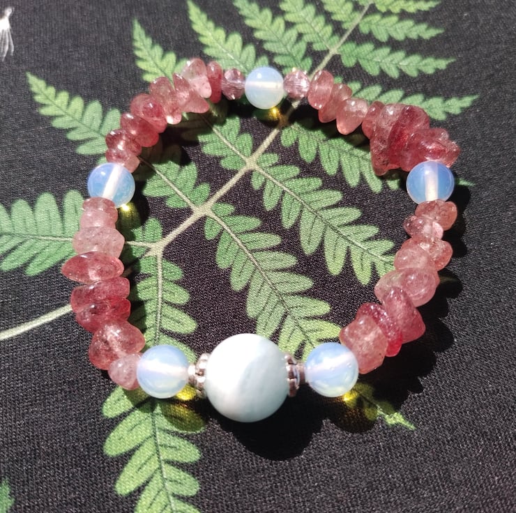 Strawberry quartz in the bracelet is related to emotional healing and spirtual growth.
