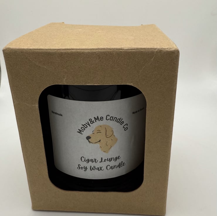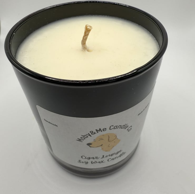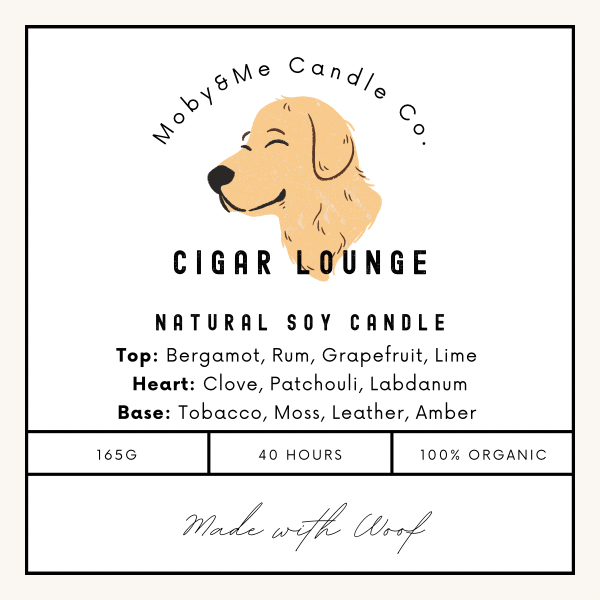 Introducing the "Cigar Lounge" Natural Soy Candle by Moby&Me Candle Co., crafted for those who appreciate sophisticated, rich aromas. Envelop your space in a warm, inviting ambiance with its distinctive blend: