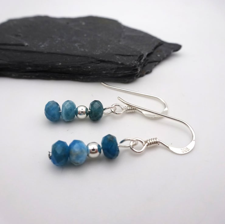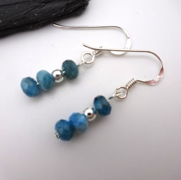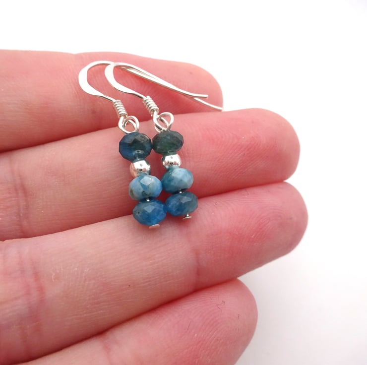 A pair of sterling silver earrings which feature Apatite gemstone beads and sterling silver beads.