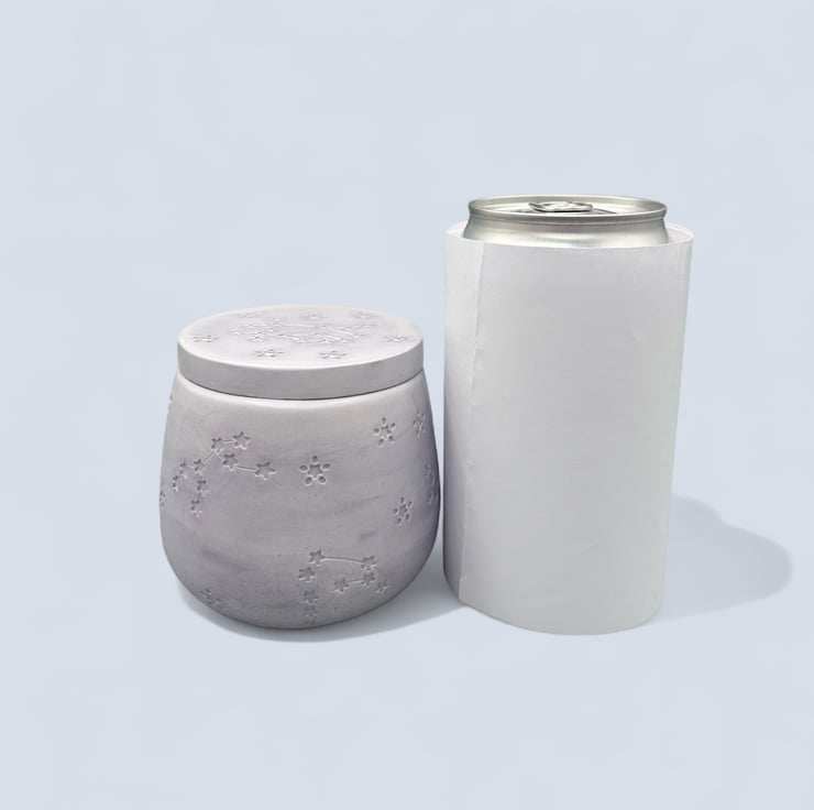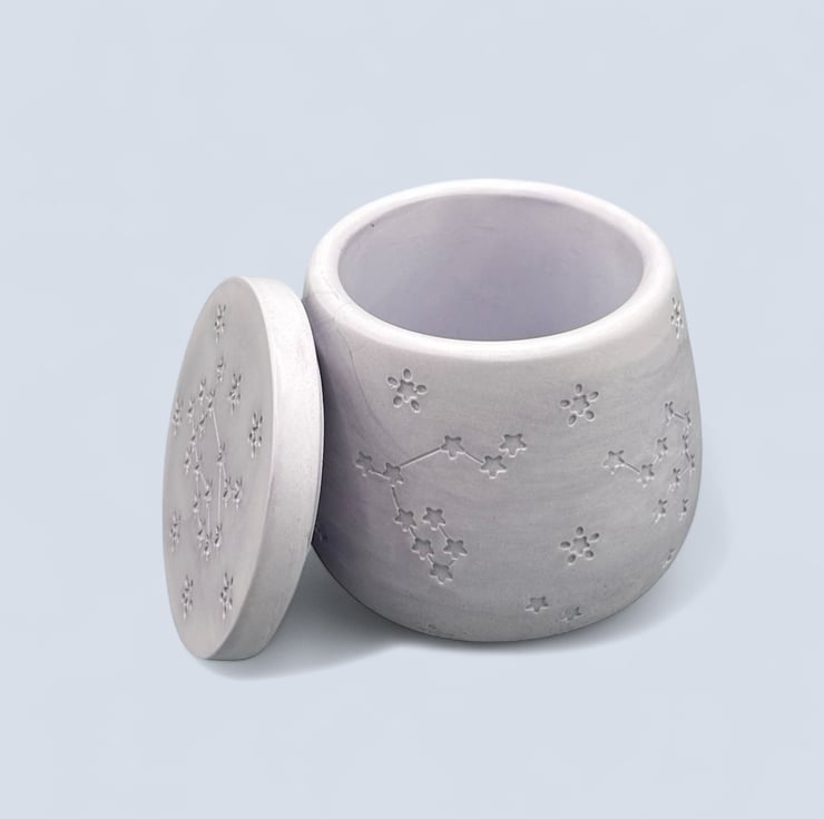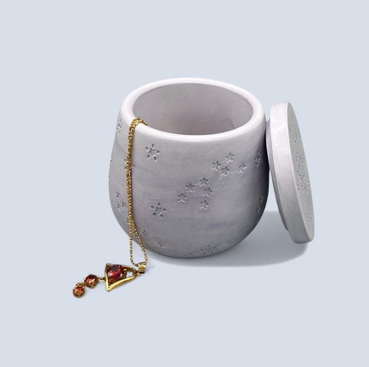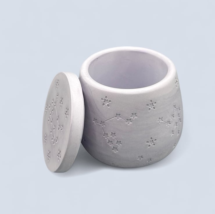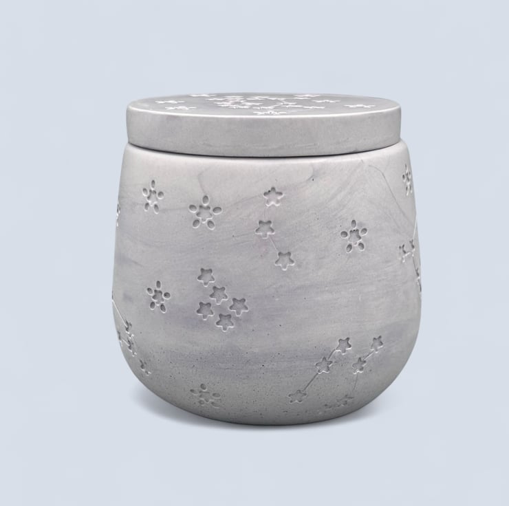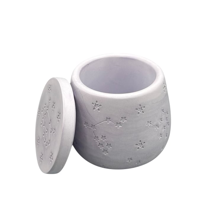 Crafted from high-quality Crystacast, this pot boasts a dense, smooth finish that resembles marble while providing a satisfying weight in your hands. It is perfect for storing your cherished keepsakes, trinkets, jewellery, or other little treasures. Plus, it can elegantly function as a candle jar for tealights or petite pillar candles, with the lid as a convenient coaster to protect your surfaces from heat.