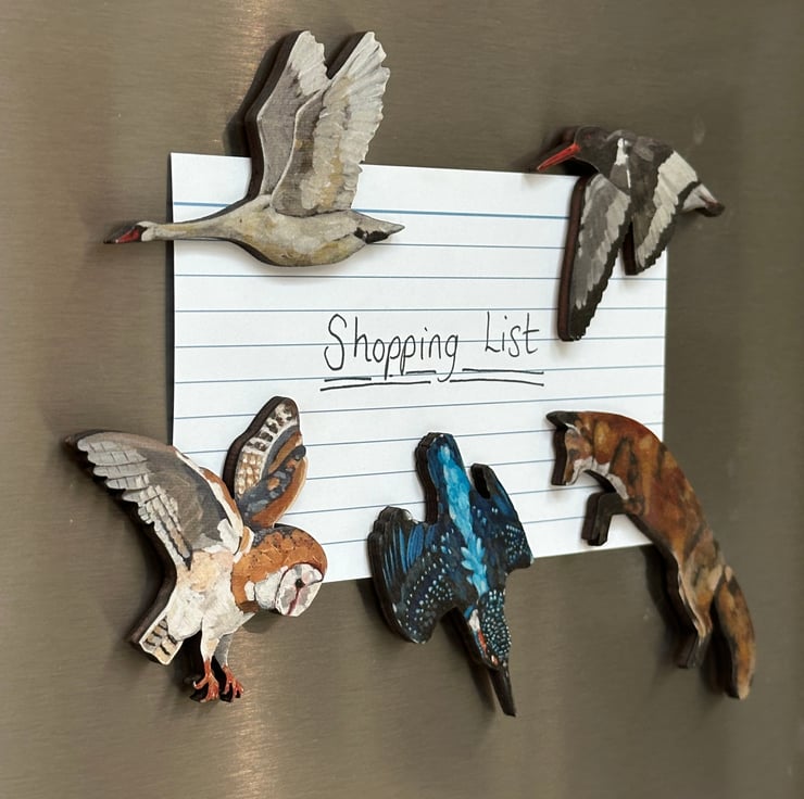 Other magnet designs include: barn owl, fox, oystercatcher and swan (also available as keyrings and hanging home decorations)