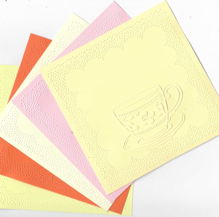 Introducing our delightful 5"x5" embossed paper featuring an elegant teacup design! Perfect for crafting, invitations, or special notes, this charming paper adds a touch of sophistication to any project. The intricate embossing brings the teacup to life, making it a standout choice for tea lovers and creative souls alike. Available in a variety of colours, you can choose the perfect hue to match your style. Let your creativity flow with this beautiful embossed paper!