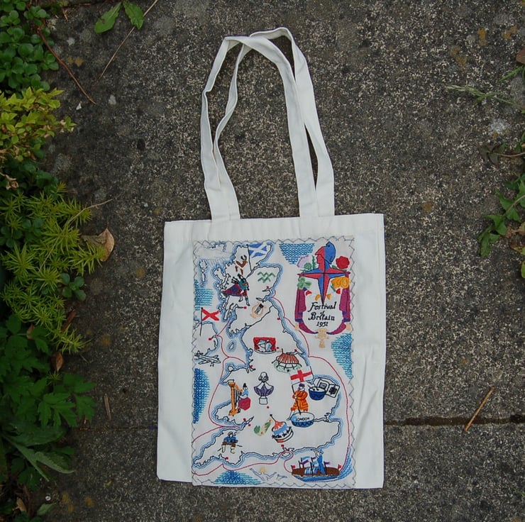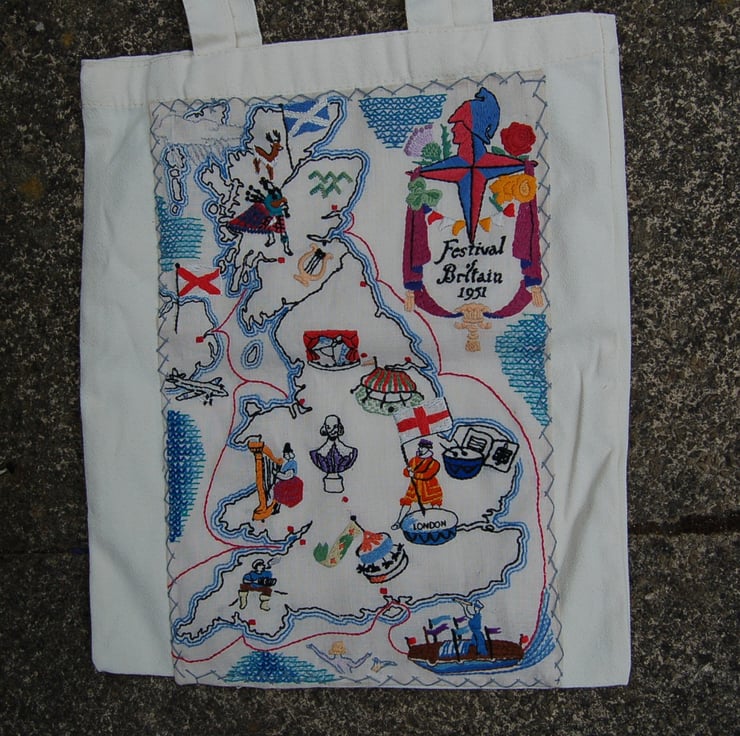I love reusing vintage items and when I found this wonderful vintage embroidery commemorating the 1951 Festival of Britain I was wildly excited. It had been framed and is in the most wonderful pristine condition.
