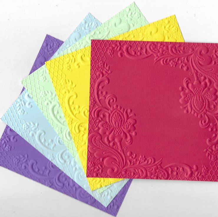 Introducing our delightful 5"x5" embossed paper featuring an elegant design! Perfect for crafting, invitations, or special notes, this charming paper adds a touch of sophistication to any project. The intricate embossing brings the design to life, making it a standout choice for creative souls. Available in a variety of colours, you can choose the perfect hue to match your style. Let your creativity flow with this beautiful embossed paper!