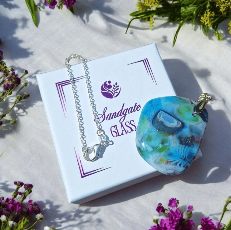 This pendant would make a lovely birthday gift, a thoughtful “thinking of you” present, or a special treat for yourself. It’s a wearable piece of glass art designed to add a splash of colour to your day.