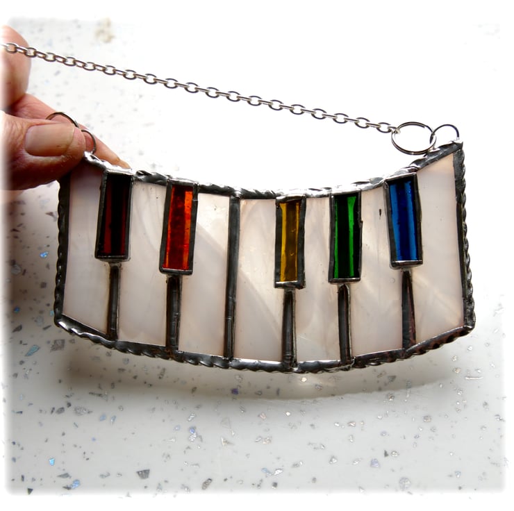 Piano Suncatcher Stained Glass Keyboard Keys Music Handmade 012