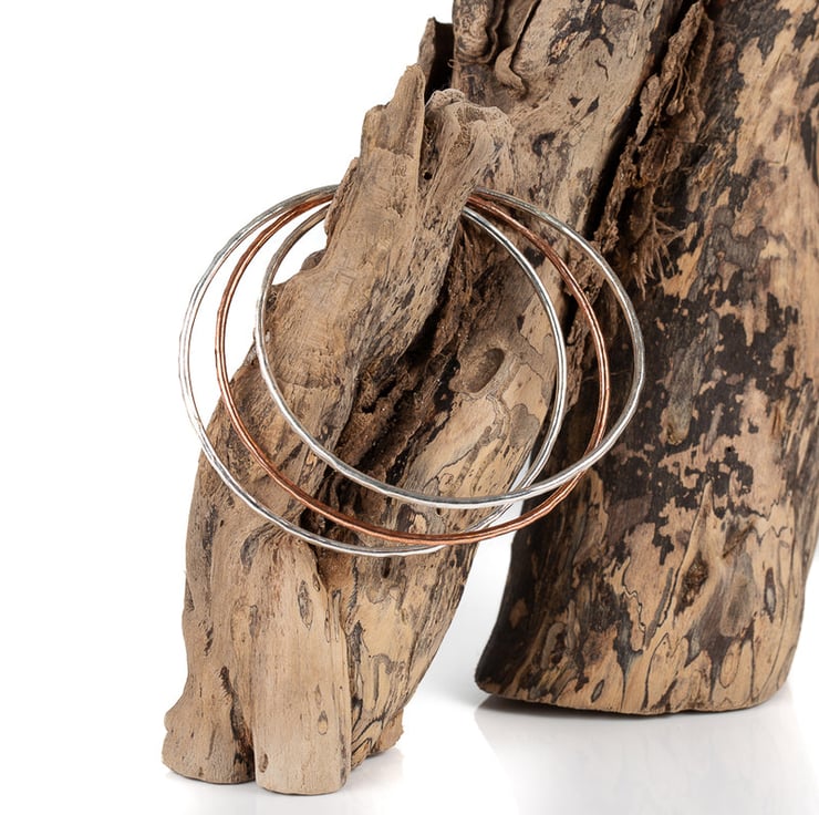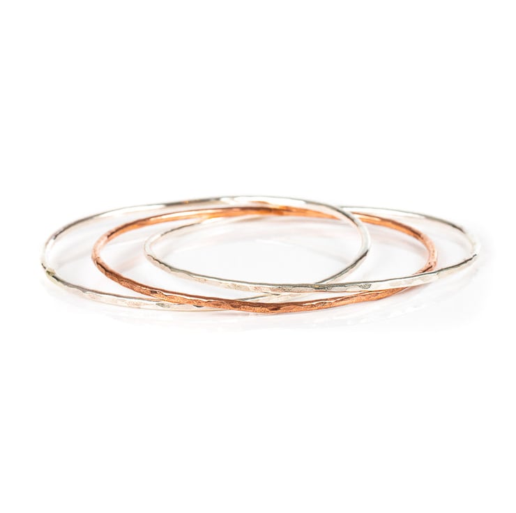Timeless beauty of this handcrafted Russian Bangle, featuring three interlinking bands: two in Sterling silver and one in copper. This elegant and symbolic piece is perfect for any occasion, from every day wear to glamourous evenings. The meaning of the trio bangle represents the past, present and future, this bangle makes an ideal wedding gift for brides or a meaningful present for loved ones. Handmade to order.