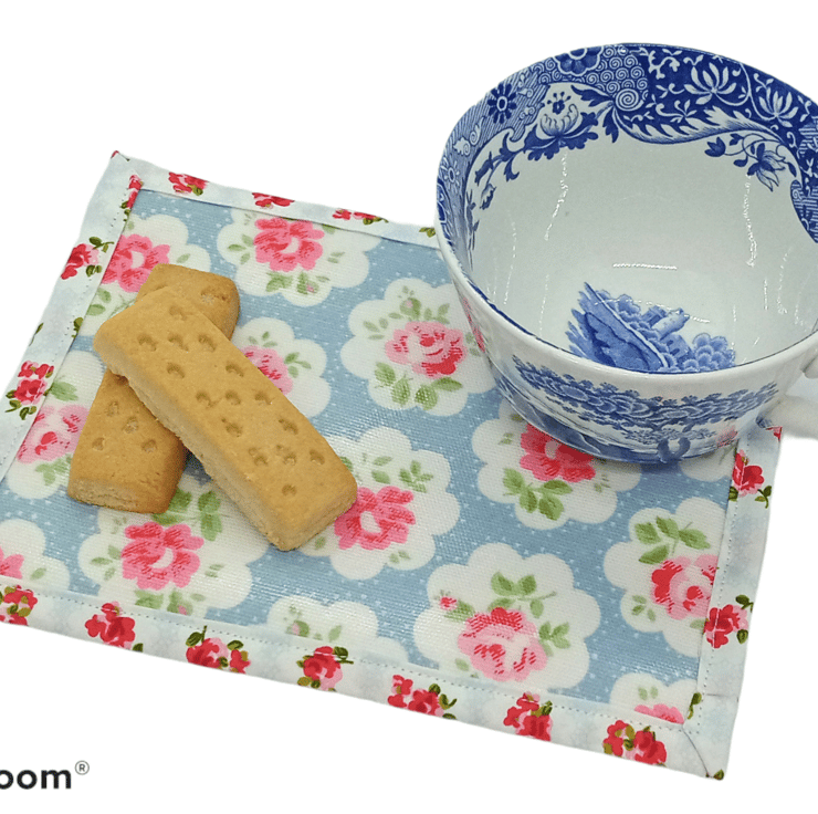 Colourful mug rug in Kath Kidston wipeable fabric to brighten up your morning coffee. The reverse is cotton in a complimentary pattern.