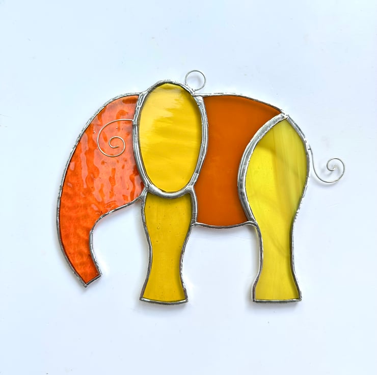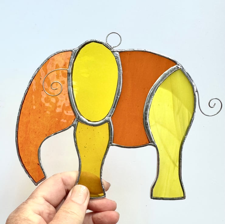 Stained Glass Elephant Suncatchers - Handmade Hanging Decoration - Orange