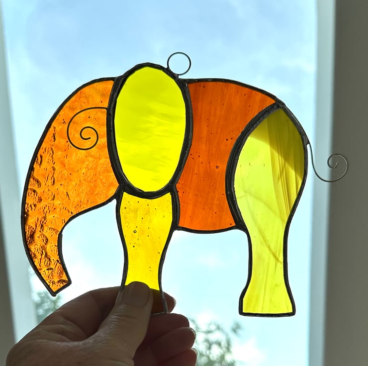 Elephant suncatcher made from beautiful stained glass by Carole’s Glass.