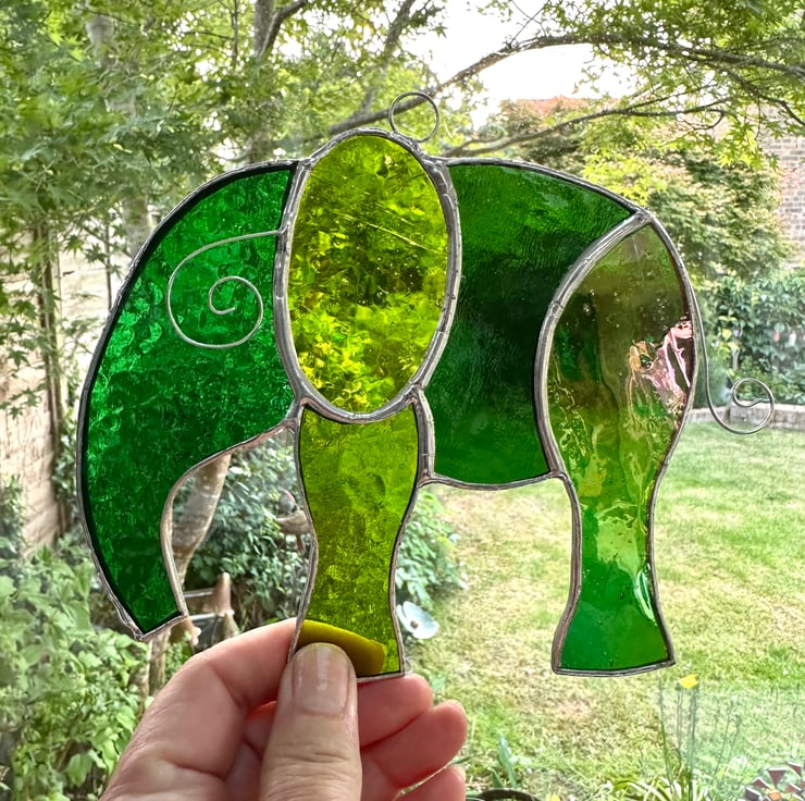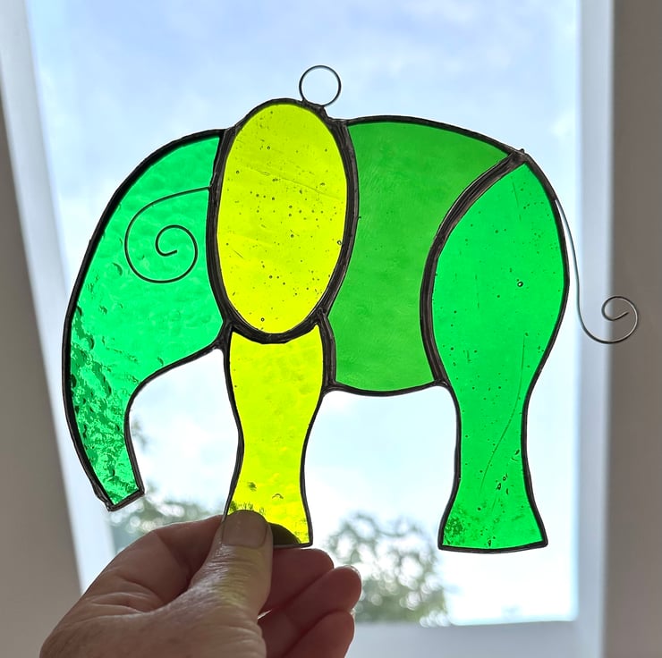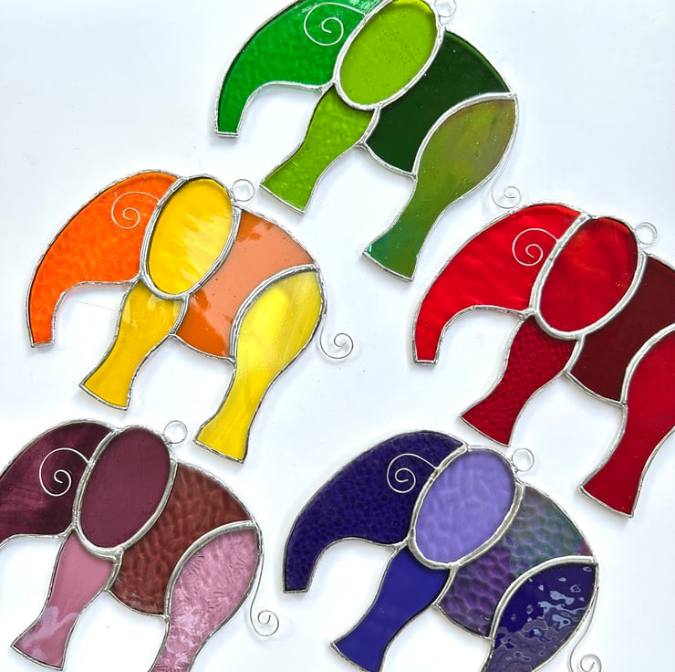 Elephant suncatcher made from beautiful stained glass by Carole’s Glass.