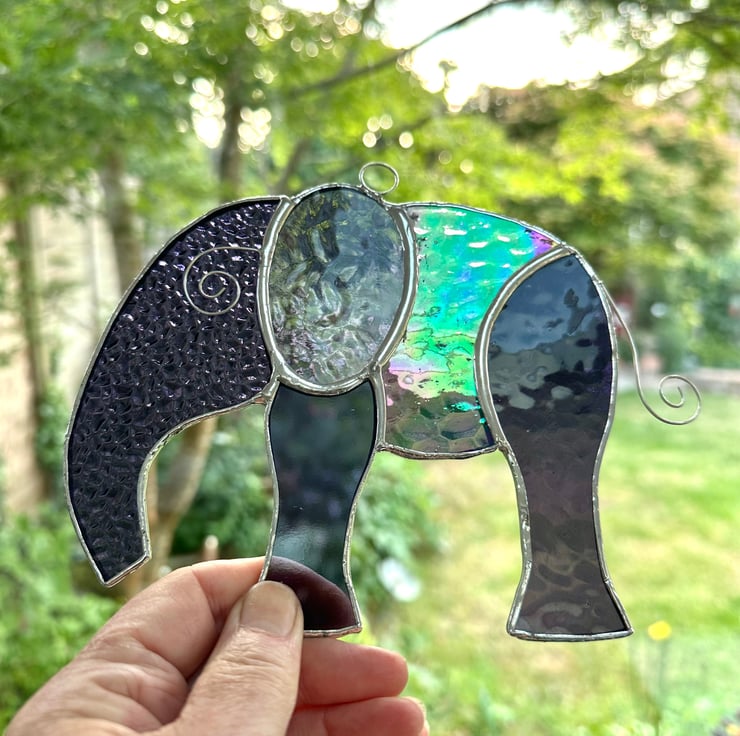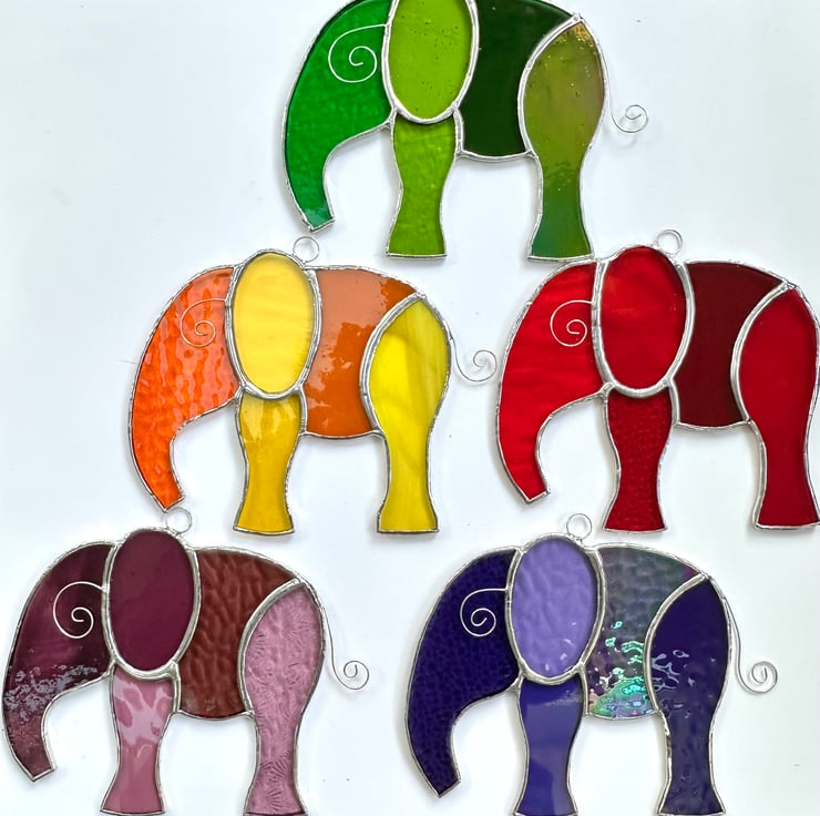 Elephant suncatcher made from beautiful stained glass by Carole’s Glass.